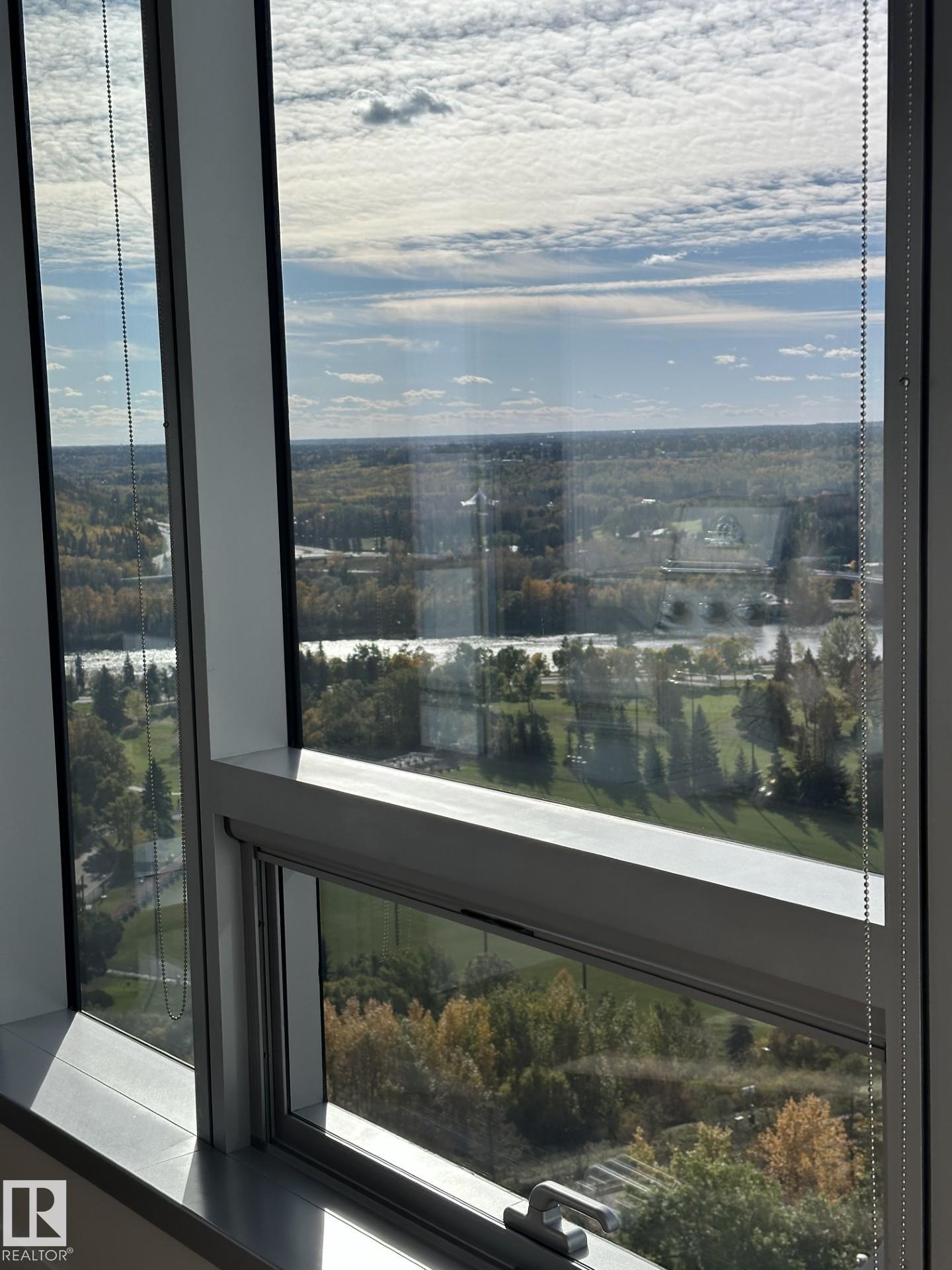 Welcome to the PEARL TOWER. Featuring this beautiful 1,546 sqft open-concept home, showcasing breathtaking views of Uptown Edmonton and the river valley through expansive curtain wall windows with hidden roller blinds, complemented by two covered balconies. The modern kitchen is equipped with a sleek Granite peninsula, high-end appliances, with a south facing view from the kitchen sink, making it a chef’s dream. The two primary bedrooms comfortably fit a king-sized bed, boasts custom closets, and opens to a...
