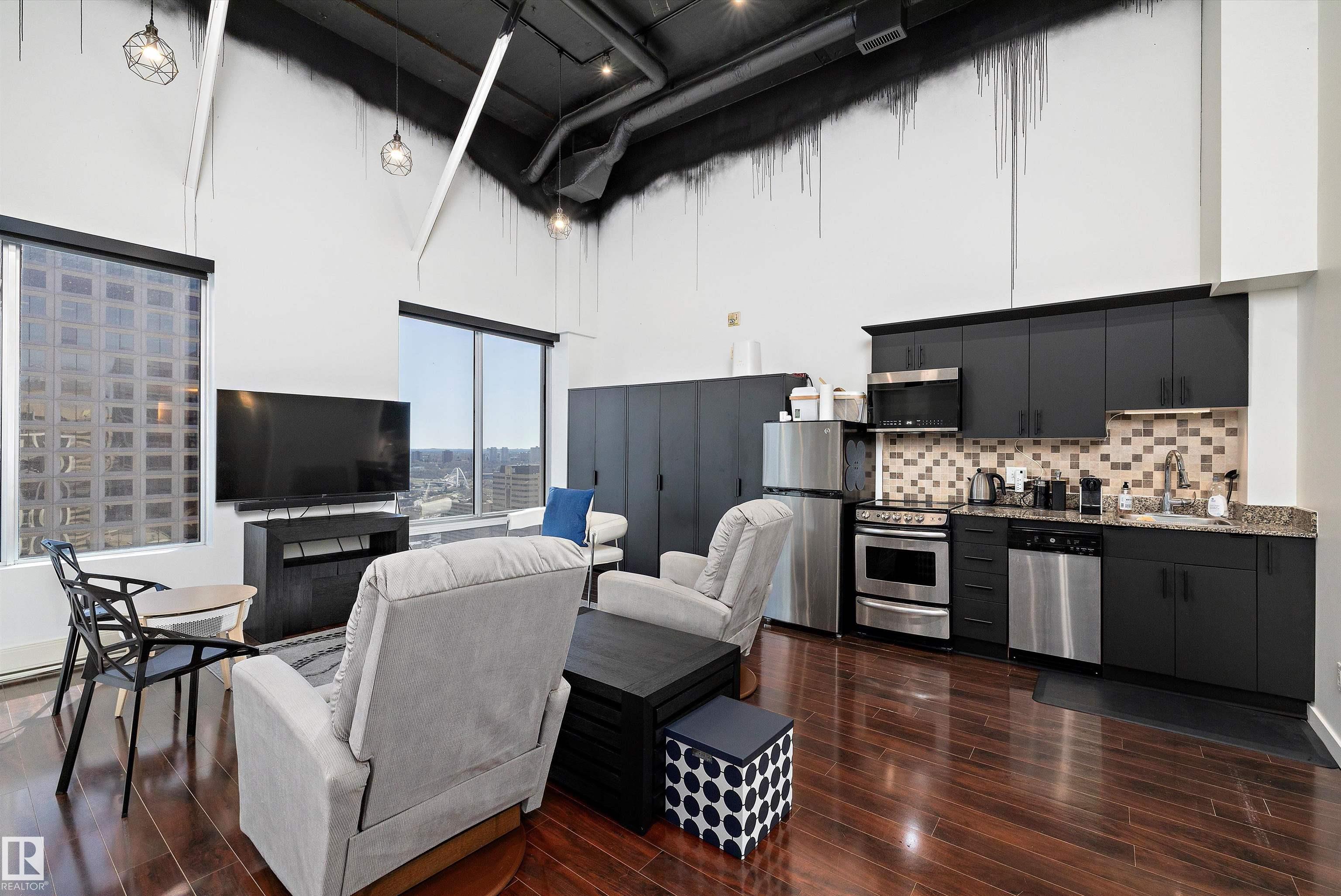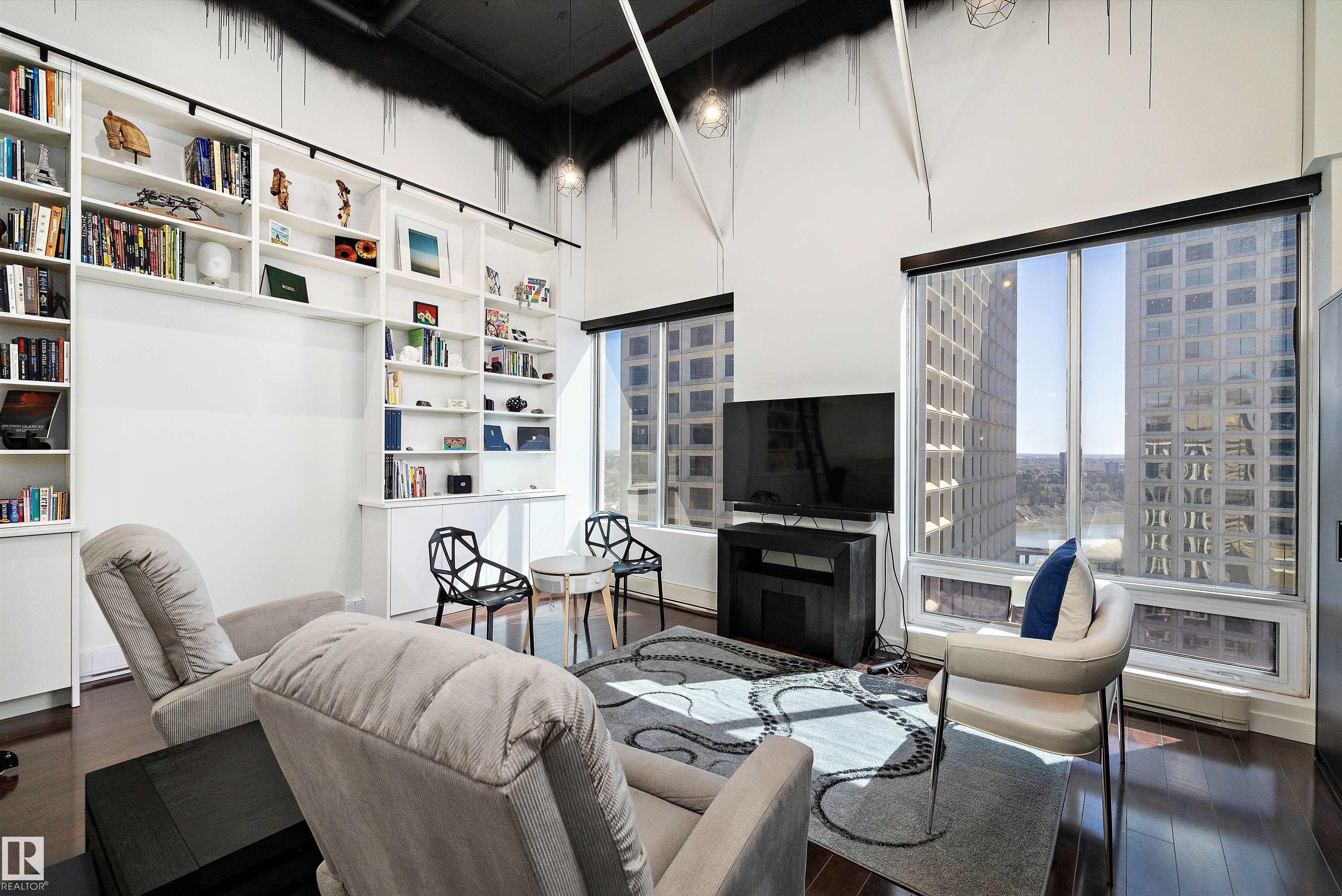 Embrace the ultimate urban lifestyle in this stunning top-floor, two-storey loft at Cambridge Lofts. Located in the heart of downtown Edmonton, this upgraded unit offers a rare river valley view and immediate access to the city's best amenities. For unbeatable convenience, the building elevator provides direct, secure access to the Central LRT station, making commutes to the U of A, MacEwan, and NAIT effortless. The interior features a functional one-bedroom plus loft layout with two full bathrooms and tit...