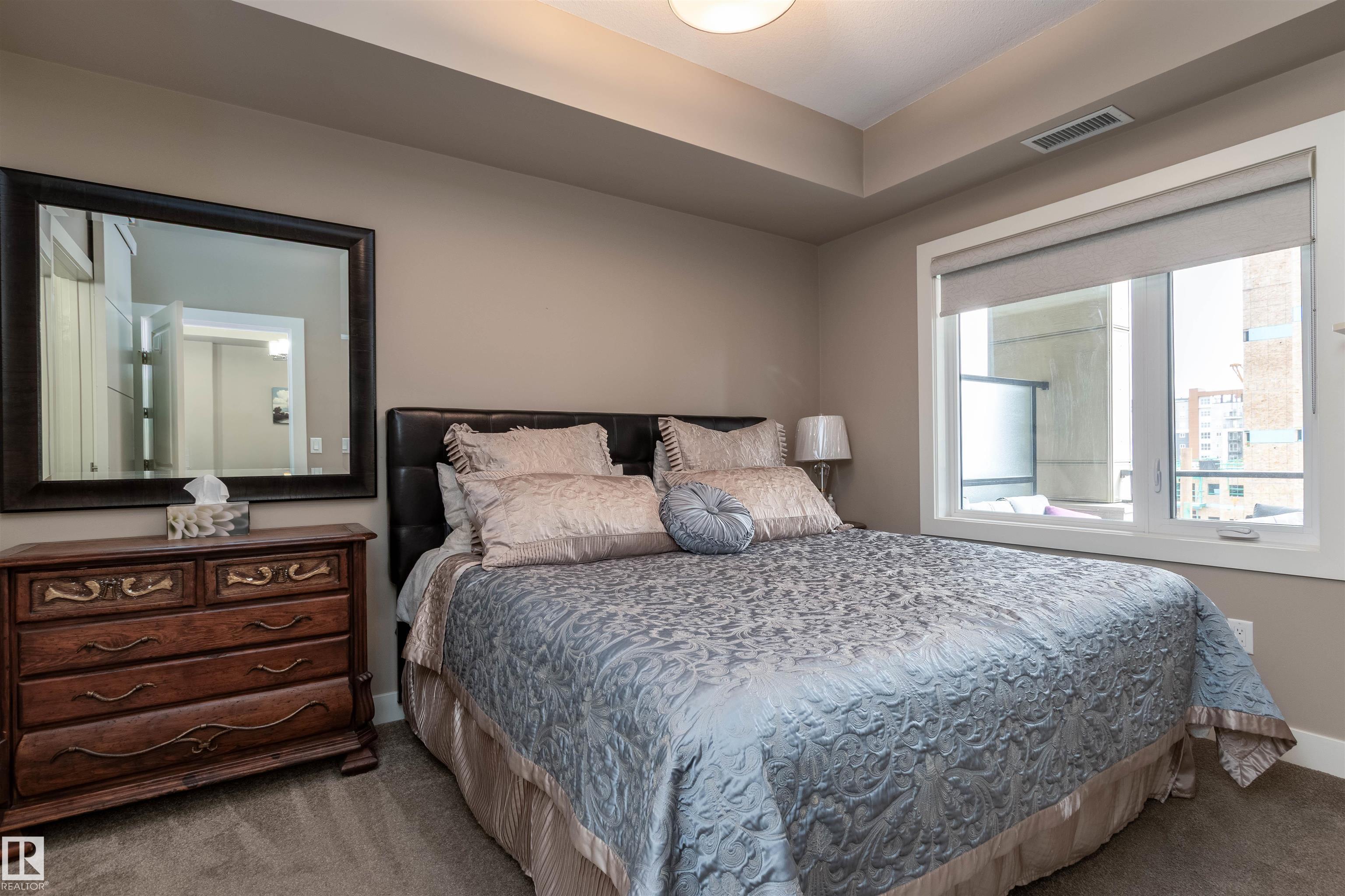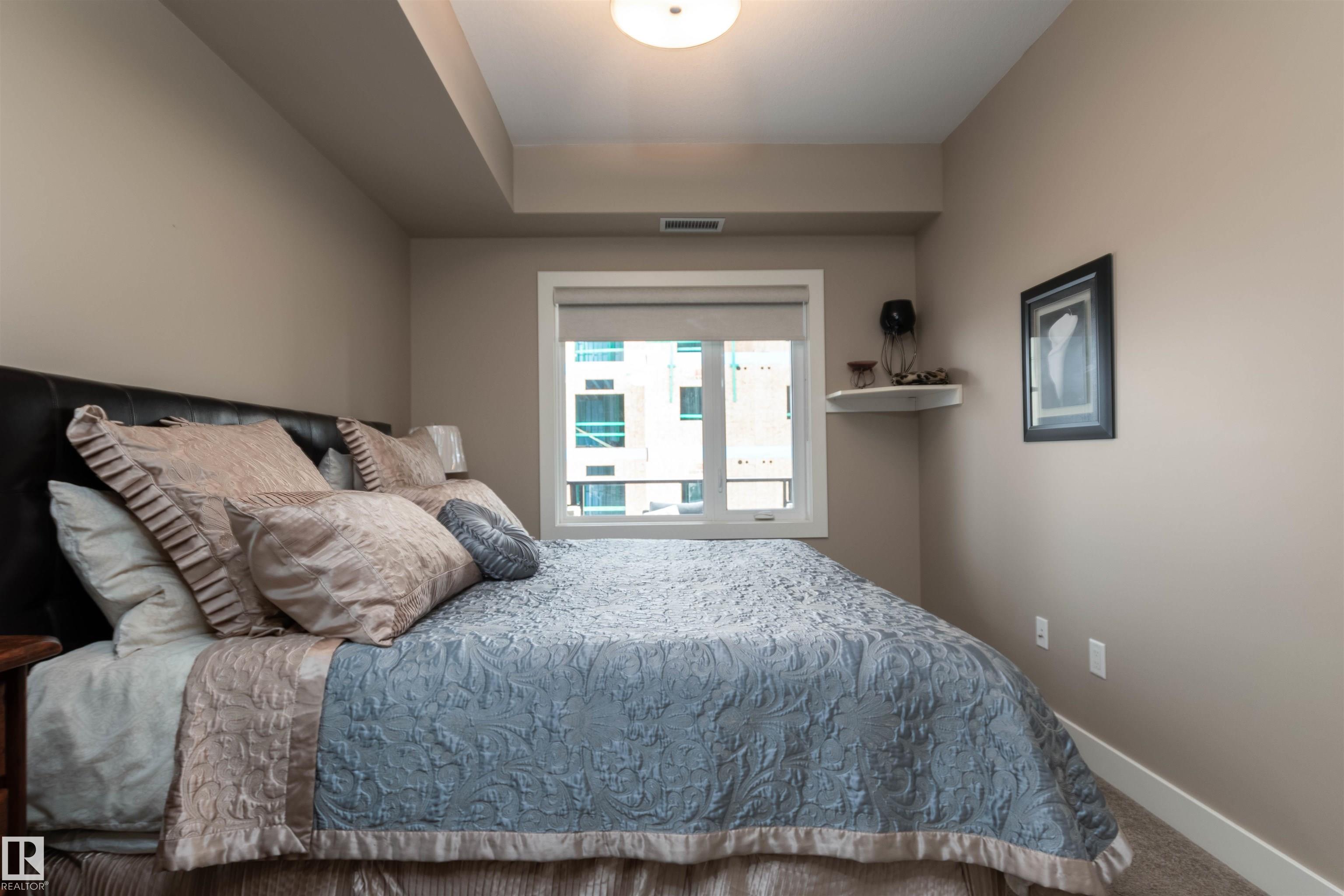END UNIT... 18 PLUS ADULT LIVING...TOP FLOOR... 9 FT CEILINGS...AIR CONDITIONING...UNDERGROUND PARKING..TITLED PARKING STALL...FITNESS ROOM... CLOSE TO EVERYTHING! This 1 bedroom PLUS DEN condo with 2 pce & 3 pce baths. Enjoy the den as office/hobby room with built in cabinetry, and in-suite laundry! Open concept kitchen, dining room and living room. Primary retreat offers a 3 pce ensuite with walk in shower. Enjoy the outdoors and view of park on a very spacious balcony with glass railings, equipped natura...