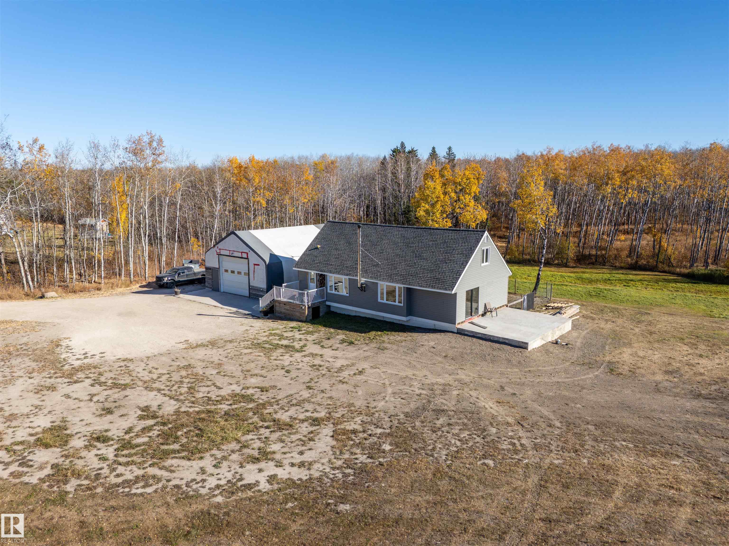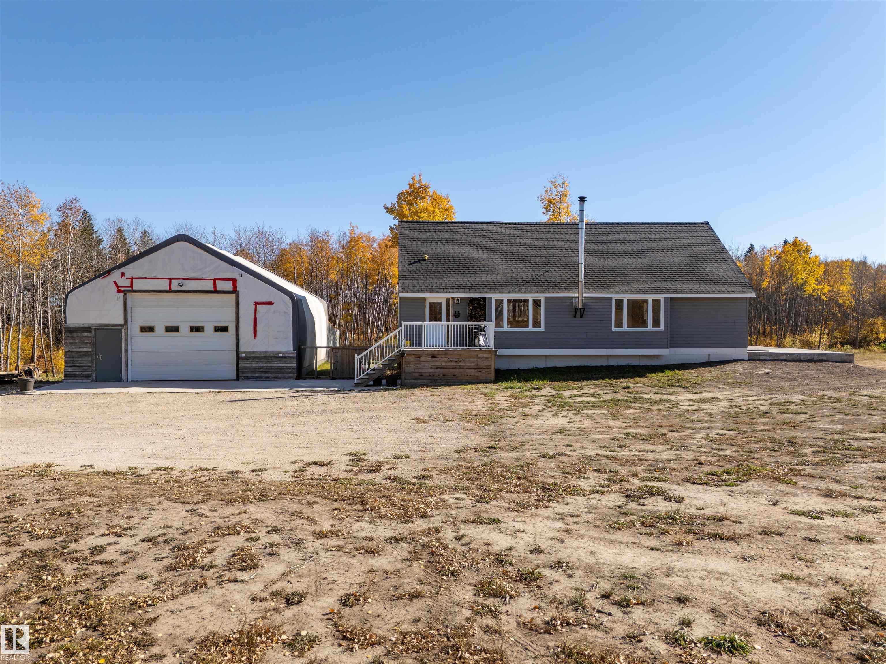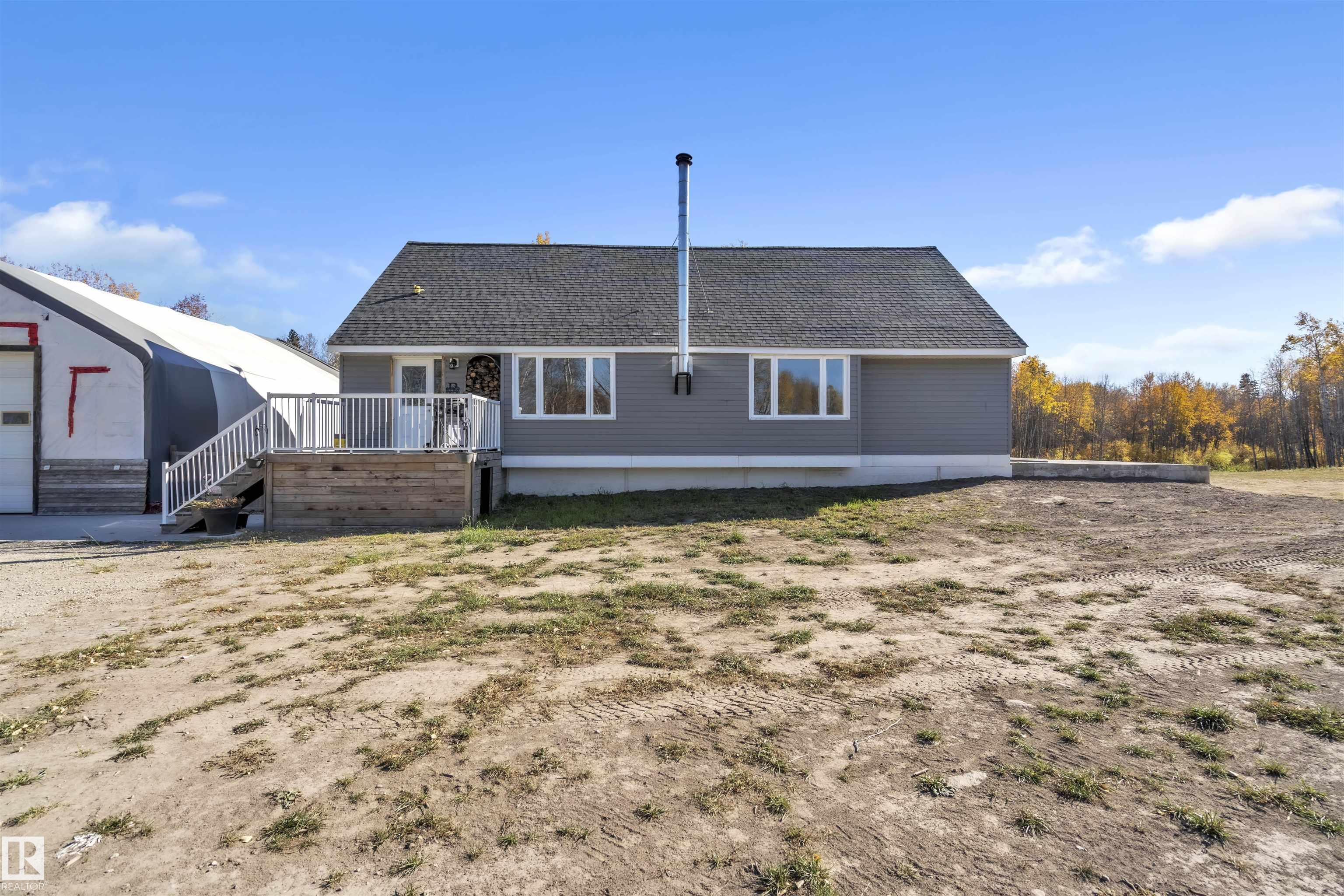 35 Acres to Call Your Own! Experience the best of country living on this stunning 35-acre property (5 acres cleared) complete with 8-10 kms of trails running through. This unique home has been extensively updated. The open-concept main floor features a bright and spacious living and dining area plus an impressive kitchen with abundant cabinetry, ample counter space, and a large island perfect for entertaining, alongside the cozy wood stove. The main floor also features a bedroom, a bathroom, and a convenien...