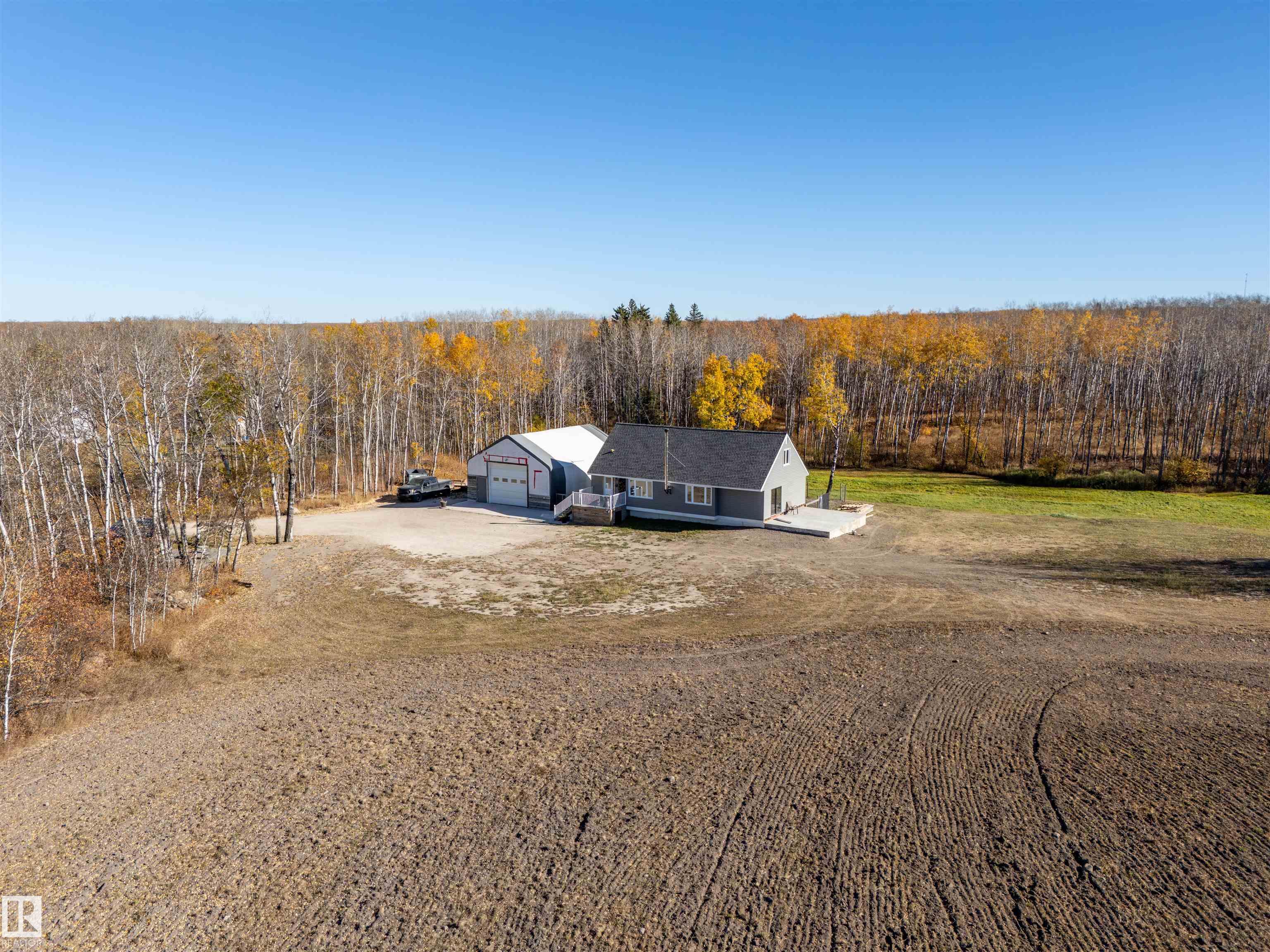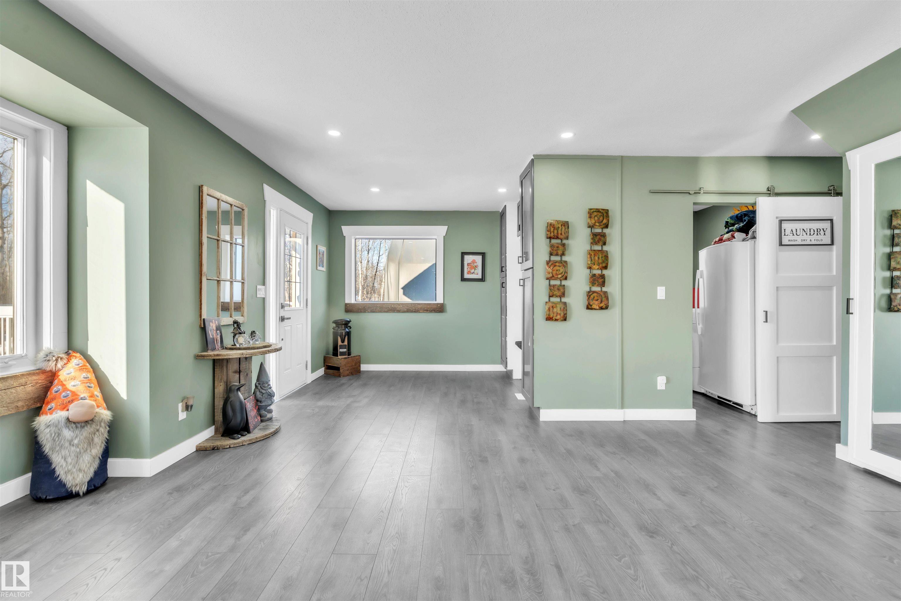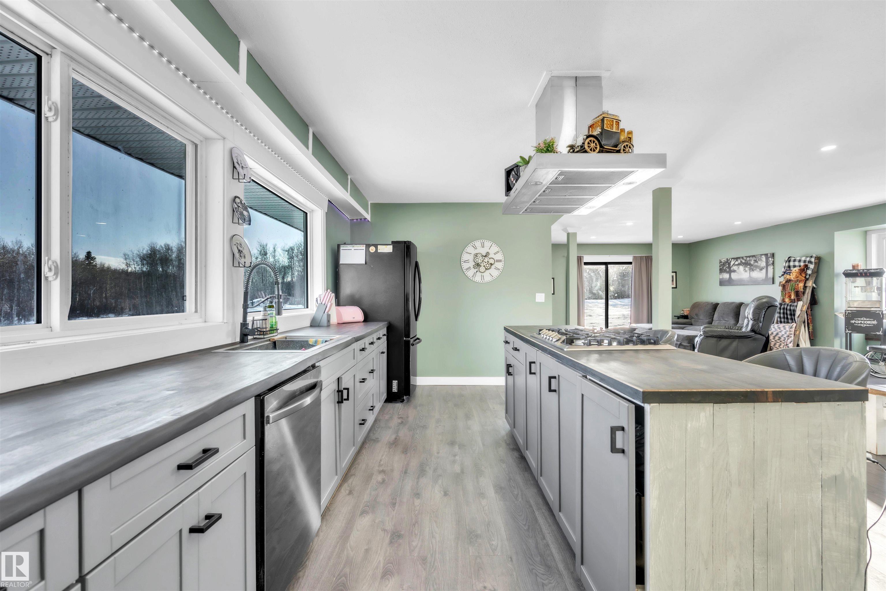 35 Acres to Call Your Own! Experience the best of country living on this stunning 35-acre property (5 acres cleared) complete with 8-10 kms of trails running through. This unique home has been extensively updated. The open-concept main floor features a bright and spacious living and dining area plus an impressive kitchen with abundant cabinetry, ample counter space, and a large island perfect for entertaining, alongside the cozy wood stove. The main floor also features a bedroom, a bathroom, and a convenien...