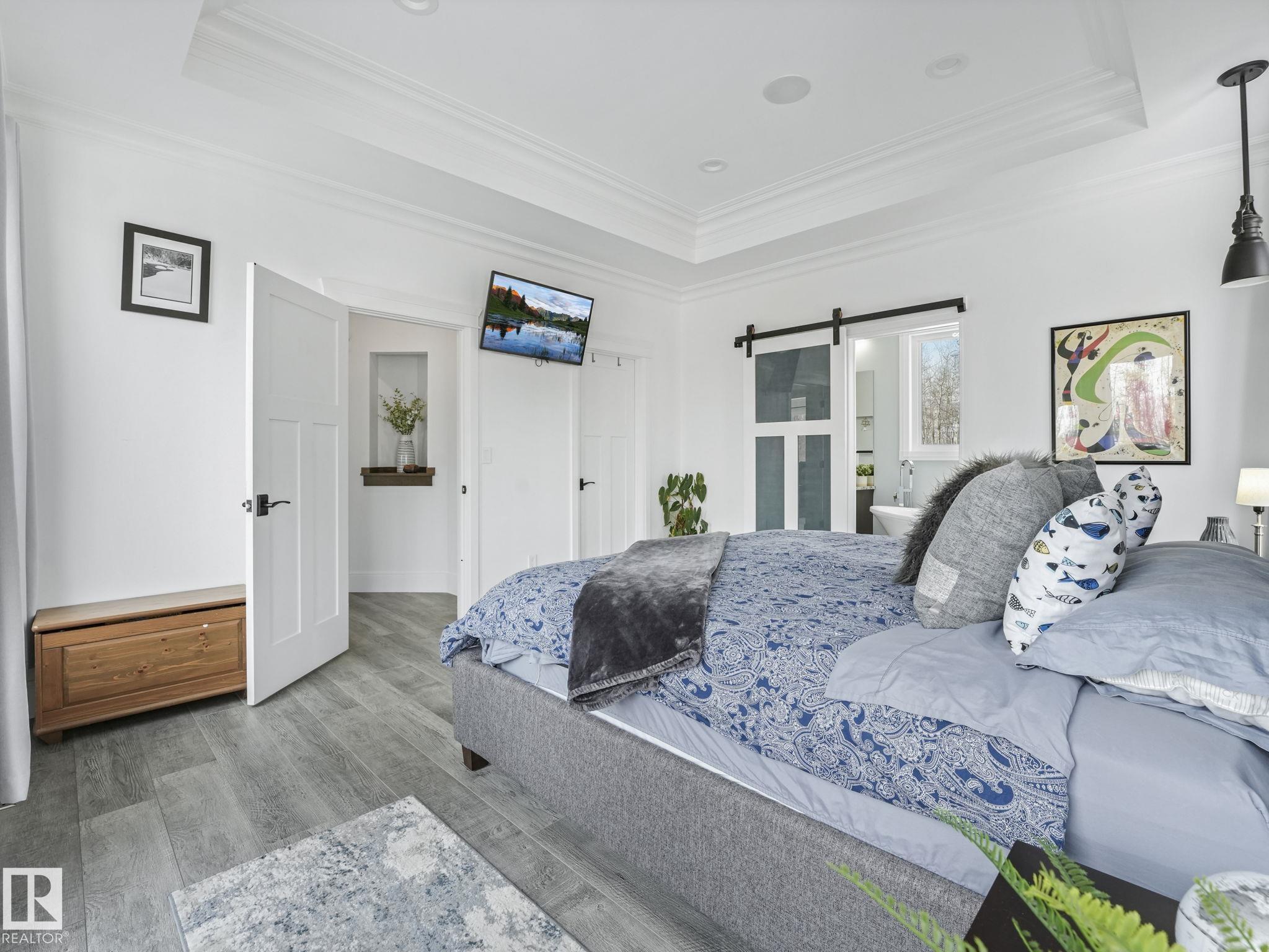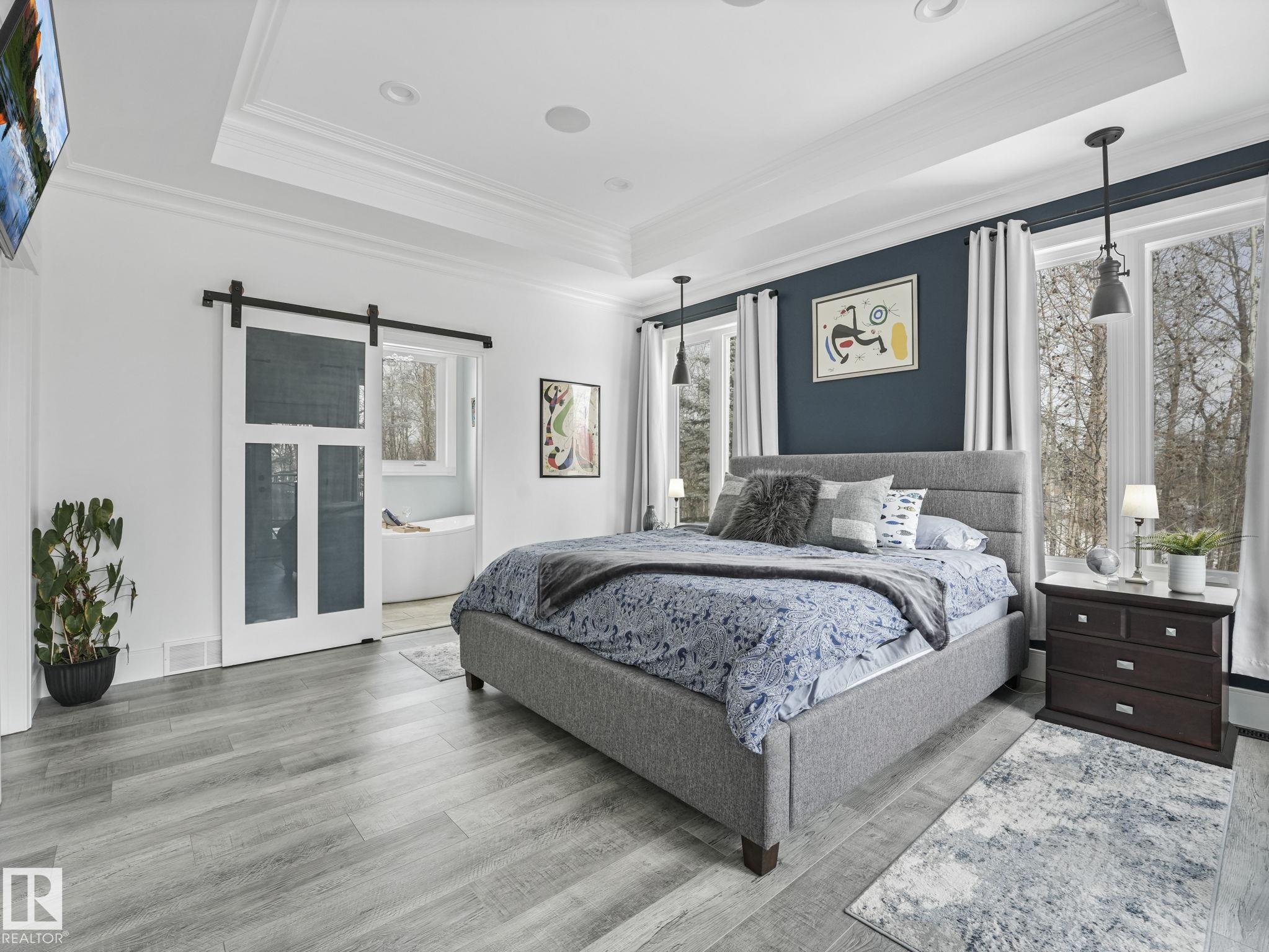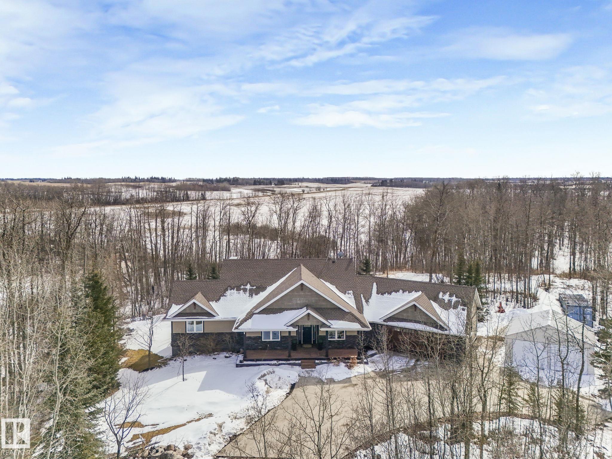 Stunning 5-bedroom home on 2.95 acres in one of Leduc County’s most sought-after country residential communities—just minutes to Beaumont, Leduc, and Nisku. Enjoy paved access, new flooring, and smart home features controlling lighting, sound, and temperature. The primary suite offers patio access to your private oasis. Chef-inspired kitchen with stainless steel tile, copper sink, dry bar, wine rack, custom cabinetry, granite countertops, crown mouldings, and coffered/vaulted ceilings, plus a butler’s pantr...